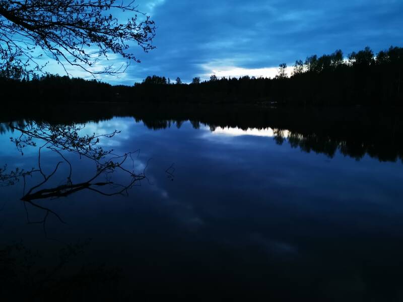 Een van de regels van wildcamperen in Zweden is dat je eigenlijk niet langer dan 24 uur maar omdat wij pas rond 01u, 01:30 aanwaren gekomen op onze eerste plek besloten we nog een nacht te blijven en de volgende dag vroeg in de dag weer te vertrekken.