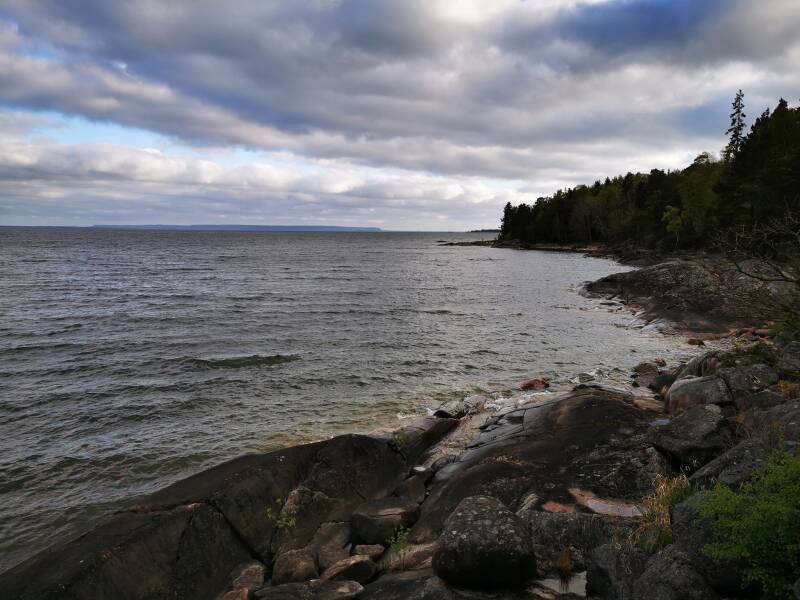 Er zaten ook erg veel kleine dorpjes langs en vakantie parken en we konden niet helemaal om het meer heen omdat we een beetje dichtbij de grens moesten blijven voor een Covid test met certificaat zodat we de grenzen over kunnen. Even goed op de kaart gekeken en we pakte een punt dicht bij waar we de volgende dag moesten zijn en een punt bij het water waar weinig paadjes liepen.